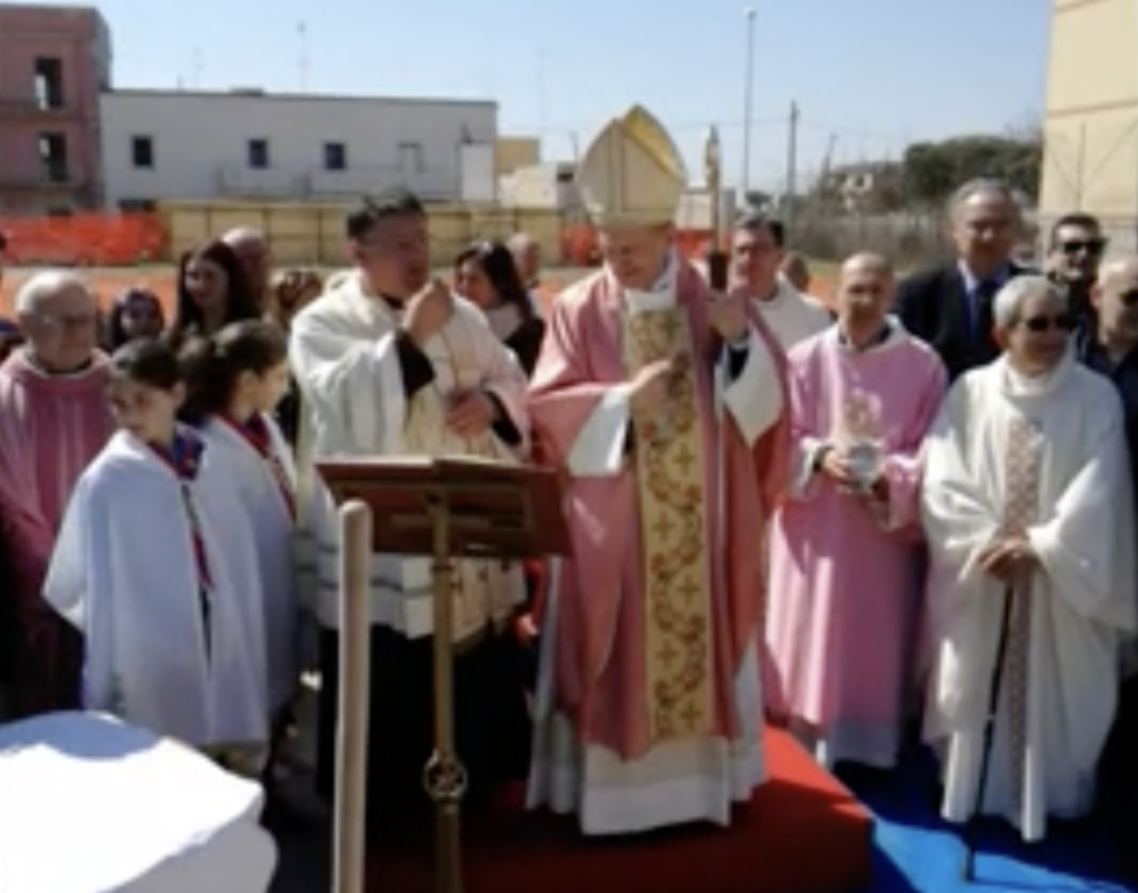 L’8 giugno 1958, in quel garage umile ma gremito di fedeli, venne celebrata la prima Messa. Don Vito non si fermava mai: con la sua Fiat 500 faceva la spola tra i conventi per recuperare sacerdoti disponibili, portando le Messe domenicali anche a Fesca, nella chiesetta dei Violante, in quella di Sant’Antonio dei Catacchio e alla Madonna della Strada dell’ANAS, che ancora oggi si può vedere imboccando l’uscita Bari Via Napoli della tangenziale in direzione Sud. In totale si celebravano sette messe festive, sforzo reso possibile anche dall’aiuto delle Suore del Preziosissimo Sangue che arrivavano ogni giorno dal rione Picone.